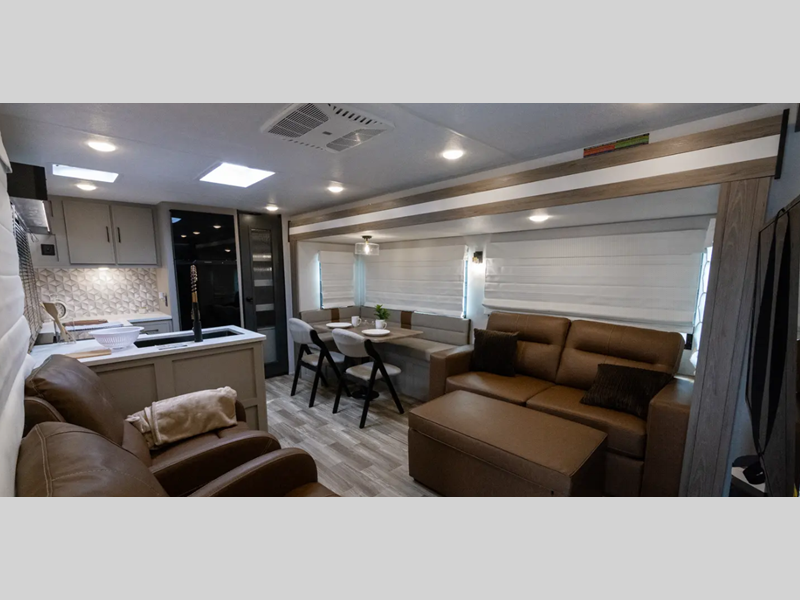 The Vibe 2600RK is engineered to accommodate up to five occupants comfortably, making it an ideal choice for families or small groups. Inside, you will find a thoughtfully arranged interior that maximizes space and utility. The rear kitchen layout is equipped with modern appliances and ample counter space, ensuring meal preparation is both convenient and enjoyable. The living area is designed for relaxation, featuring plush seating and a well-appointed entertainment system.
