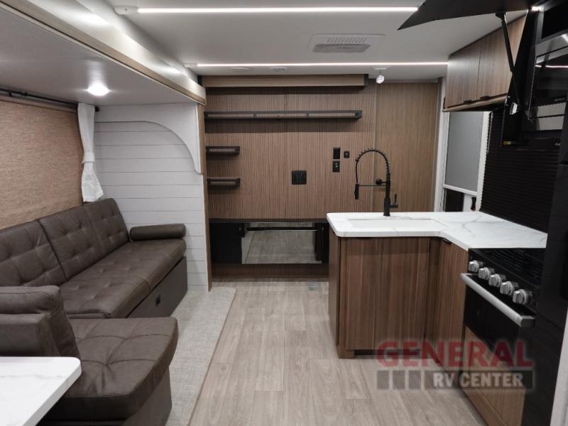 Inside, you'll find accommodations for up to eight people, making it perfect for family vacations or trips with friends. The cleverly designed layout includes a cozy master bedroom, a versatile bunkhouse, and a convertible dinette and sofa, ensuring everyone has a comfortable place to sleep. The kitchen is fully equipped with modern appliances, allowing you to whip up delicious meals on the go. Plus, the spacious living area is perfect for unwinding after a day of adventure, with plenty of seating and entertainment options.