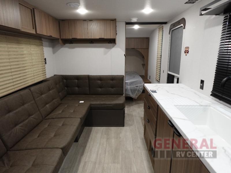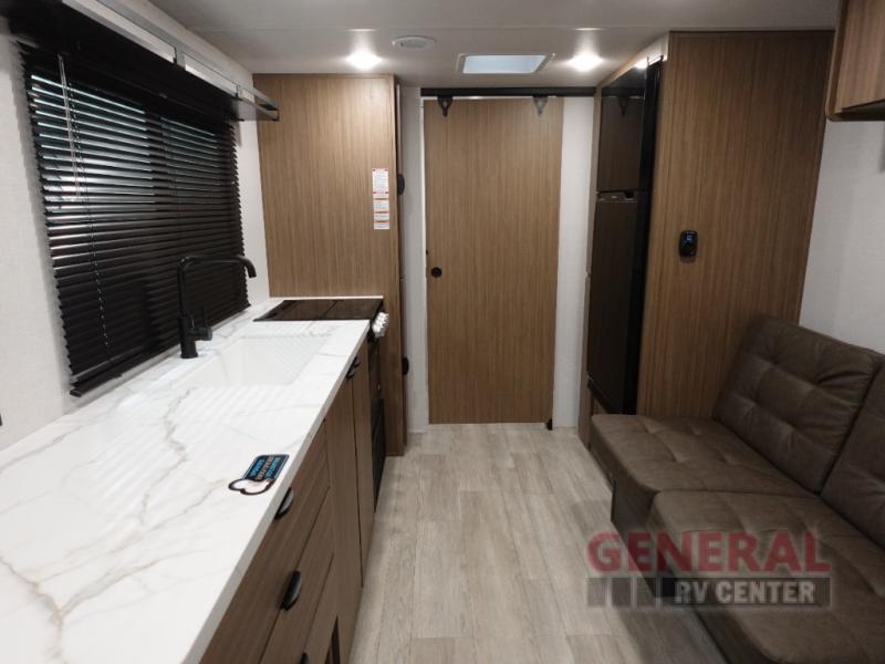 Weighing in at just 2,257 kilograms, the Wildwood FSX 233RBLE is lightweight and easy to tow, ensuring a smooth journey to your favorite destinations. Its compact design does not compromise on features; inside, you'll find a well-appointed living area complete with a cozy sleeping arrangement, a fully equipped kitchenette, and a modern bathroom. The interior is thoughtfully designed to maximize space and functionality, providing a comfortable retreat after a day of adventure.