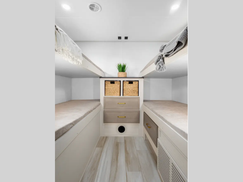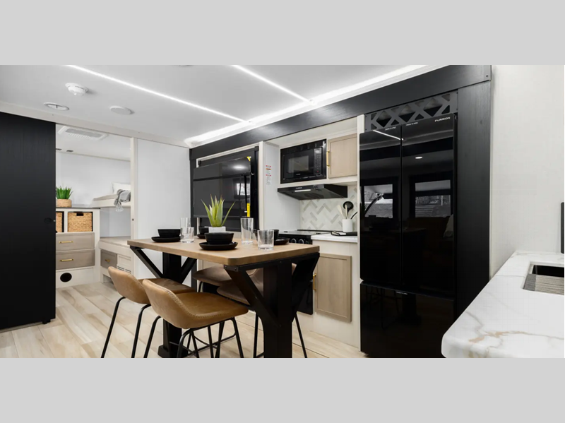 Step inside and be greeted by a thoughtfully designed interior that maximizes space and convenience. The Wildwood 301FAM features a modern kitchen equipped with state-of-the-art appliances, including a refrigerator, microwave, and stove, allowing you to prepare delicious meals on the go. The cozy living area boasts plush seating and a large entertainment center, perfect for relaxing after a day of exploration. With multiple sleeping arrangements, including a private master bedroom and convertible furniture, this travel trailer comfortably accommodates up to eight people, making it perfect for family getaways or trips with friends.