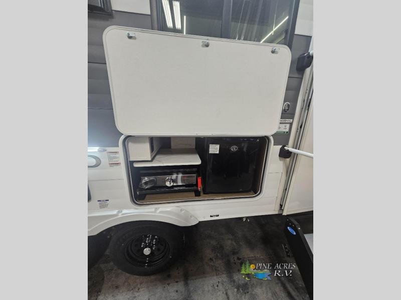 Step inside and be greeted by a thoughtfully designed interior that can comfortably sleep up to eight people. Whether you're planning a weekend getaway or an extended road trip, the single slide-out expands your living space, providing a cozy environment for relaxation and entertainment. The well-appointed kitchen is perfect for preparing delicious meals on the go, while the dining area invites you to share stories and laughter over dinner. The sleeping arrangements include a comfortable master bed, bunk beds, and convertible seating areas, ensuring everyone has a restful night's sleep.