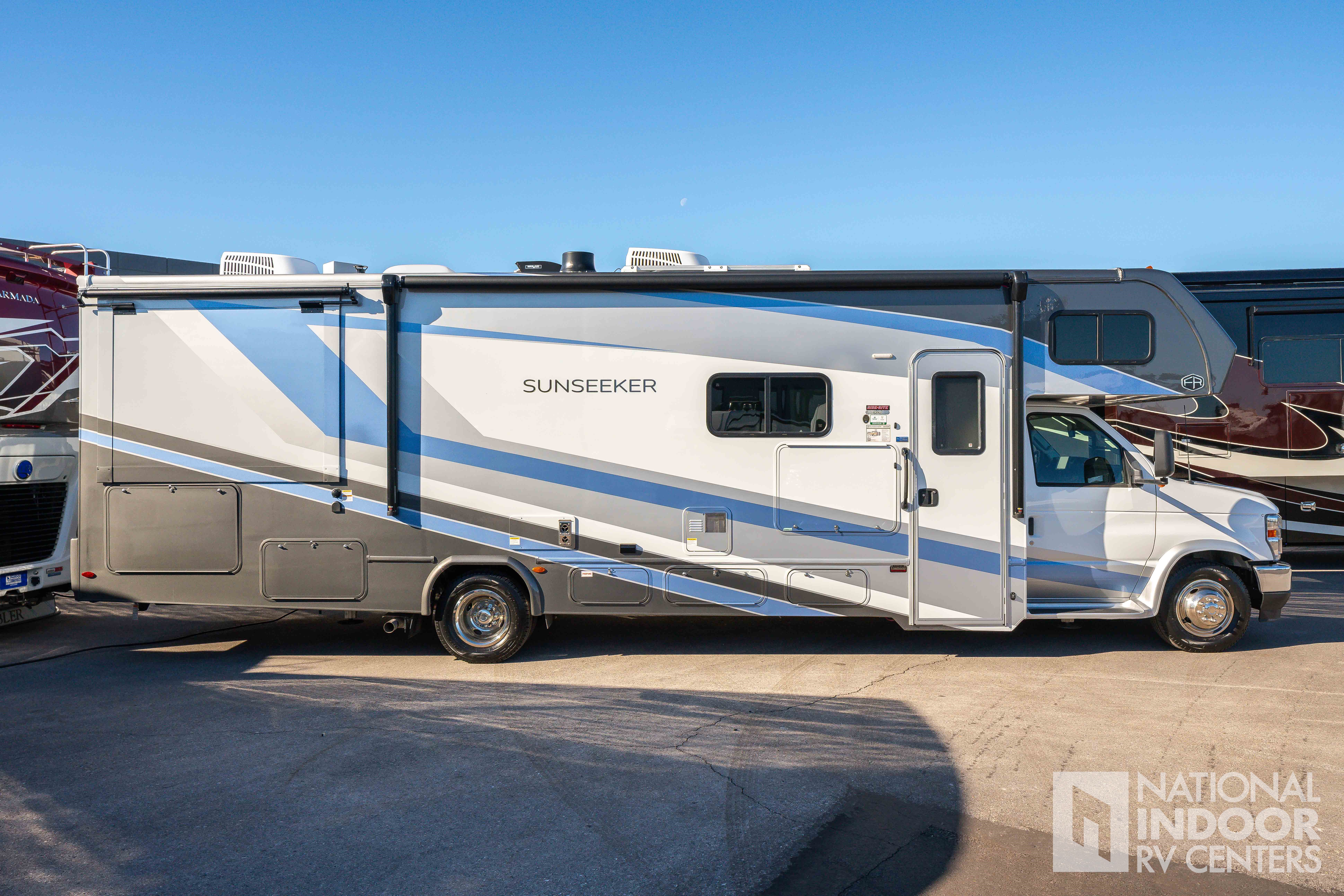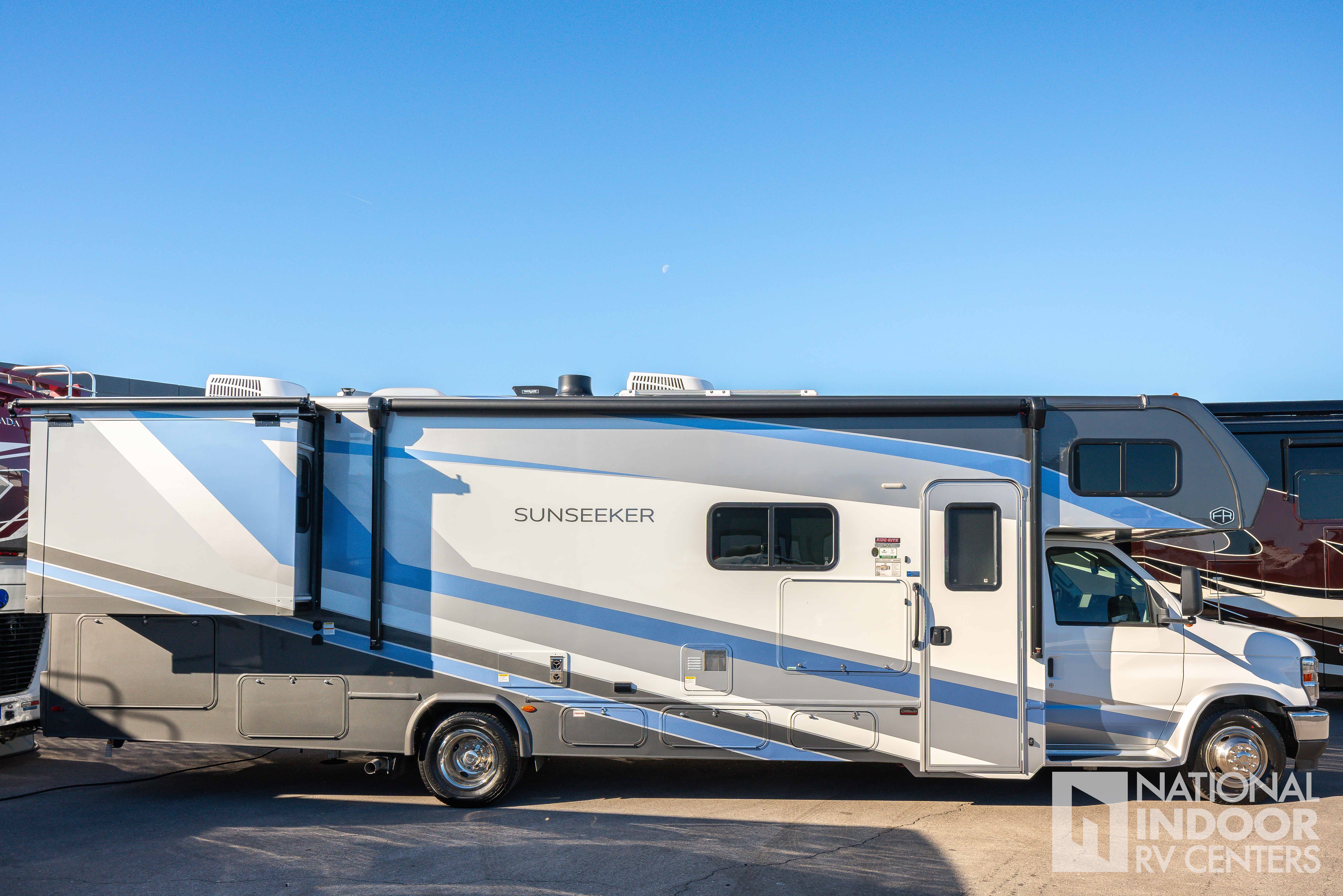 The Sunseeker 3011DSF features two slide-outs, expanding the living area to create a generous and inviting space. Inside, you'll find a thoughtfully designed layout that includes a fully equipped kitchen with a refrigerator, stove, and microwave, allowing you to prepare meals with ease. The comfortable living area is perfect for unwinding after a day of exploration, featuring plush seating and a dinette that converts into an additional sleeping area. The master bedroom offers a cozy retreat with a queen-sized bed, ensuring restful nights on the road.