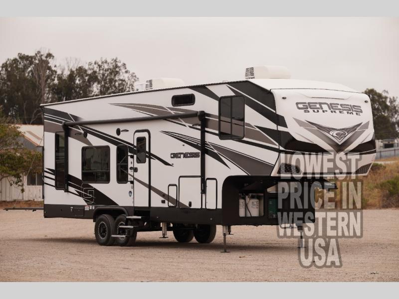 Discover the ultimate in luxury and adventure with the 2026 Genesis Supreme Genesis Supreme 28IKS Fifth Wheel. This meticulously crafted RV is designed for those who seek both comfort and functionality on the road. With a length of 28 feet, this fifth wheel offers ample space for family and friends, making it the perfect choice for memorable road trips and outdoor excursions.