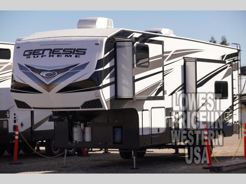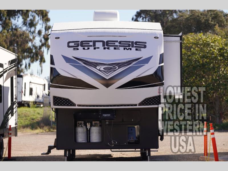 With a fuel capacity of 151 liters, this RV is ready to take you on extended journeys without frequent refueling stops. Weighing in at 4,912 kilograms, it offers a sturdy yet manageable towing experience. The Genesis Supreme 28IKS is not just an RV; it's your ticket to unforgettable adventures and cherished memories. Don't miss the opportunity to own this exceptional fifth wheel and embark on the journey of a lifetime!