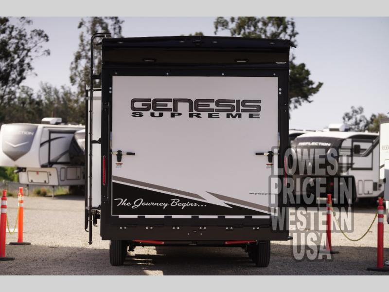 Weighing in at 4,237 kilograms, the Genesis Supreme G3215FSXL is built with durability and stability in mind, ensuring a safe and smooth ride. This toy hauler is not just a vehicle; it's a gateway to new experiences, offering the perfect balance of luxury and practicality. Whether you're heading to the mountains, the beach, or the open road, the Genesis Supreme G3215FSXL is your trusted companion, ready to take you wherever your heart desires. Embrace the freedom of the open road with this exceptional RV, and create memories that will last a lifetime.