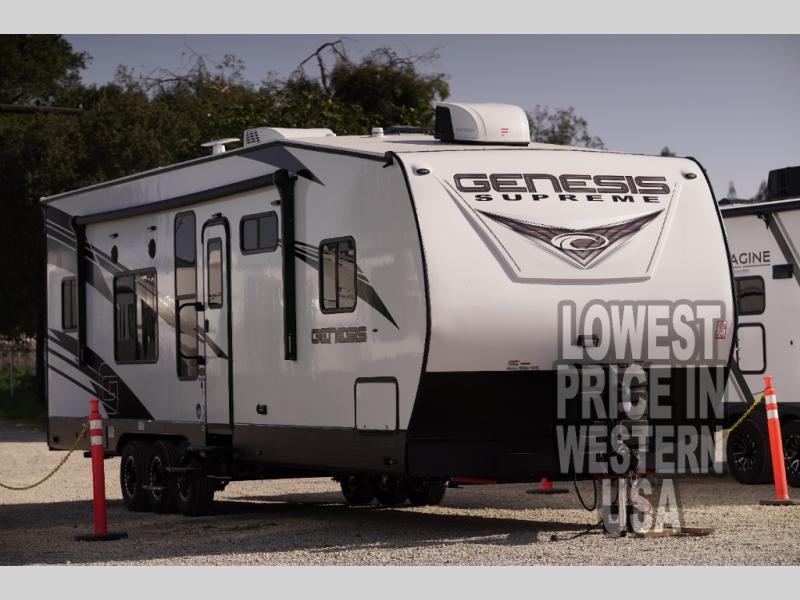 Introducing the 2026 Genesis Supreme G3215FSXL Toy Hauler, a remarkable blend of functionality and comfort designed for the adventurous spirit. This RV is engineered to accommodate your travel needs with precision and reliability. With a length of 30 feet, this spacious toy hauler offers ample room for both living and storage, ensuring that you and your companions can travel in comfort without sacrificing the essentials.