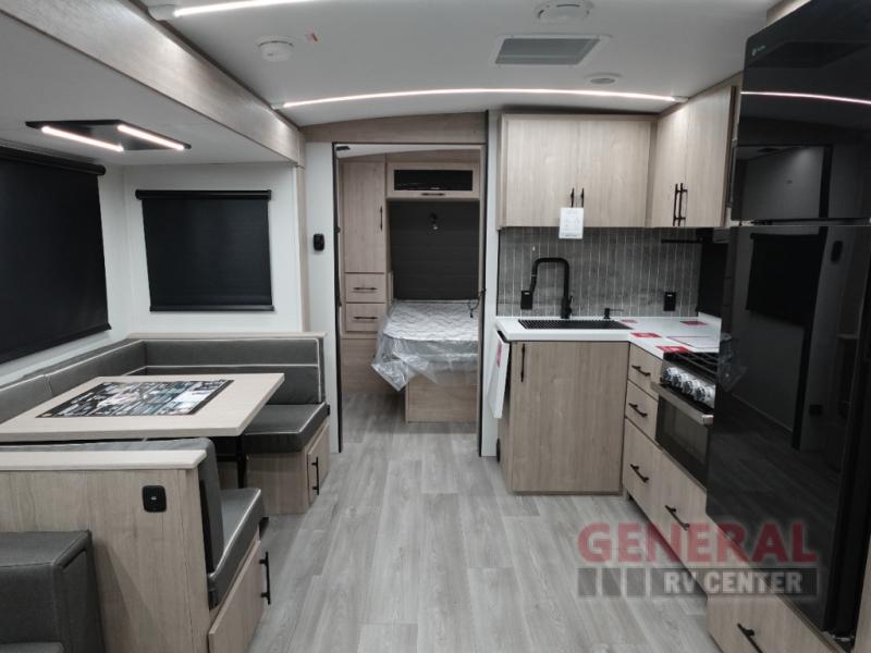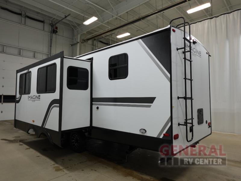 The Imagine 2800BH features a single slide-out, which significantly enhances the living space, providing an open and airy atmosphere. The intelligently designed floor plan includes a fully equipped kitchen, a cozy dining area, and a comfortable living space, all meticulously crafted to meet the needs of today's discerning travelers. The sleeping arrangements are thoughtfully configured, with a master bedroom, bunk beds, and convertible seating areas, ensuring a restful night's sleep for everyone on board.