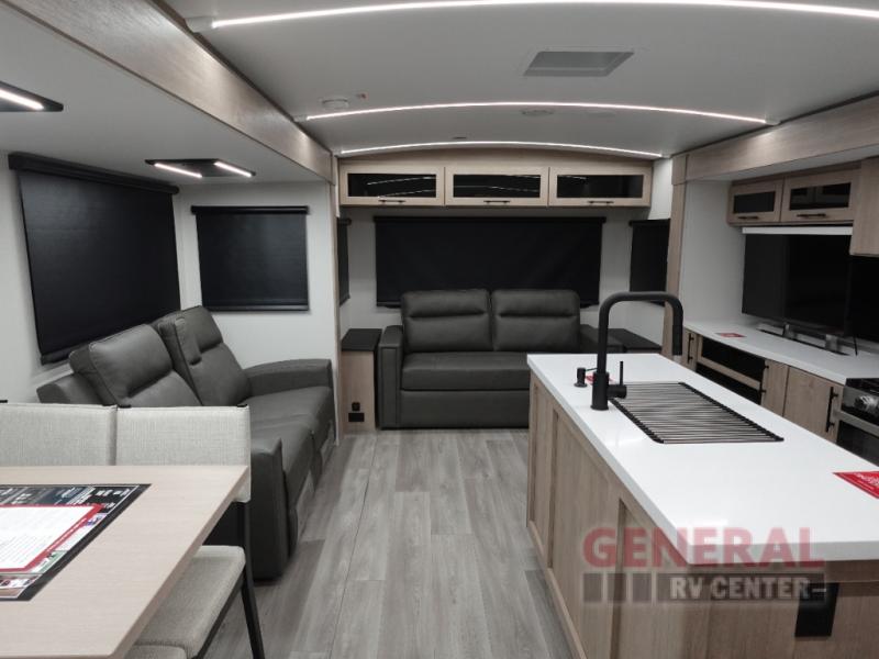 The Imagine 2970RL features two expertly engineered slide-outs, significantly enhancing the interior space to create a welcoming and open environment. This model comfortably accommodates up to four individuals, making it perfect for families or couples seeking a luxurious retreat on wheels. The interior is thoughtfully designed with high-quality materials and finishes, ensuring a sophisticated and comfortable living experience. The spacious living area is complemented by a fully equipped kitchen, allowing you to prepare meals with ease, while the cozy sleeping quarters promise restful nights.