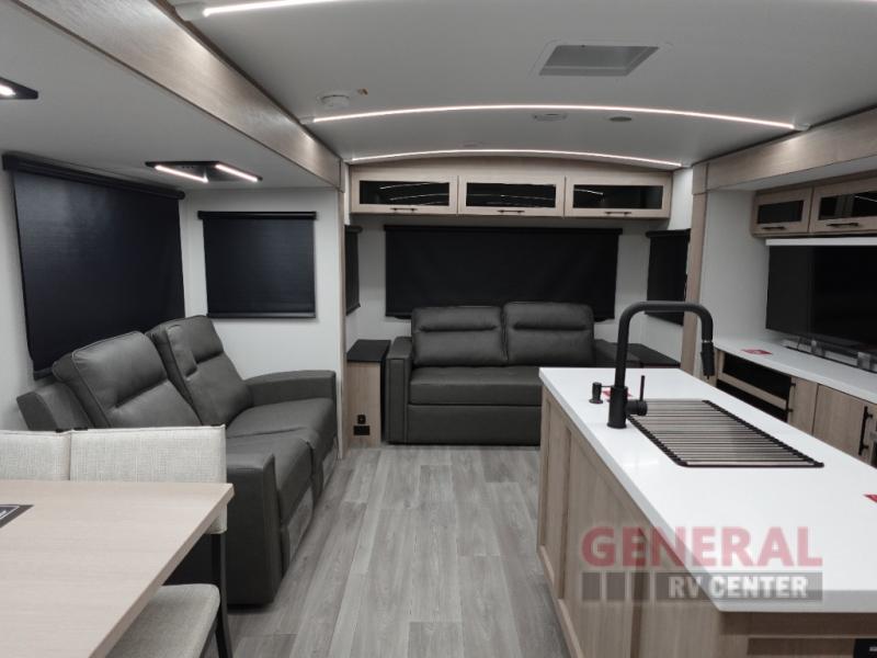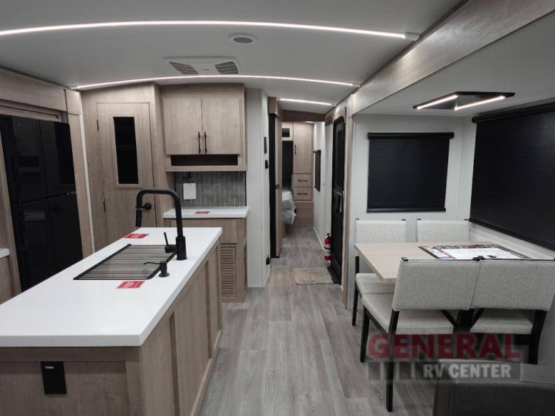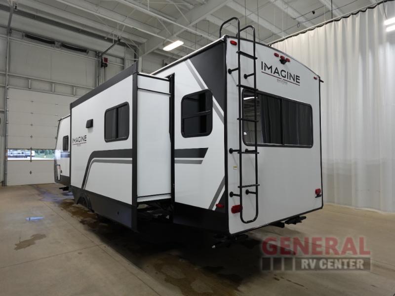 Measuring approximately 28 feet in length, the Imagine 2970RL provides a well-thought-out layout that comfortably sleeps up to four people. The interior is thoughtfully designed to maximize space and functionality, featuring a cozy living area with plush seating and a fully equipped kitchen. Whether you're preparing a gourmet meal or enjoying a quick snack, the kitchen's modern appliances and ample counter space make cooking a breeze. The inviting bedroom offers a restful retreat with a comfortable bed and plenty of storage for all your travel essentials.