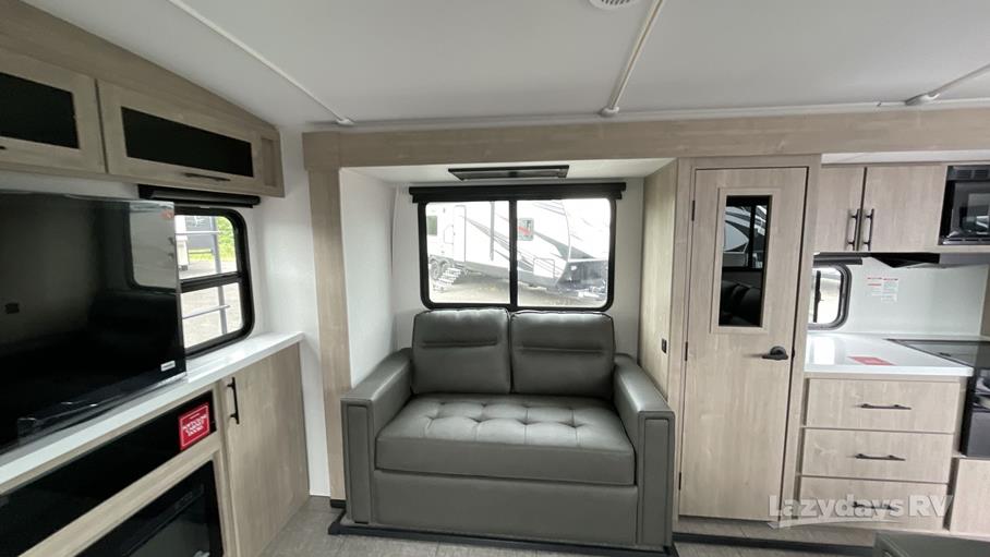 This beauty comes with two slide-outs, giving you extra room to stretch out and make yourself at home. Whether you're cooking up a storm in the fully-equipped kitchen or lounging in the spacious living area, you'll appreciate the thoughtful layout and modern amenities. The interior is designed for comfort and convenience, featuring cozy seating, a large dining area, and plenty of storage for all your gear.