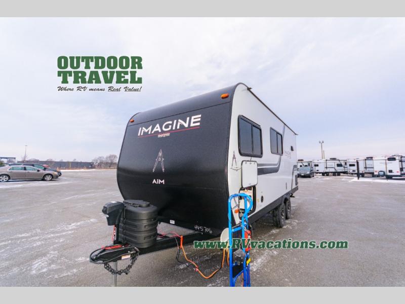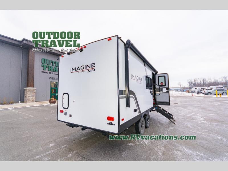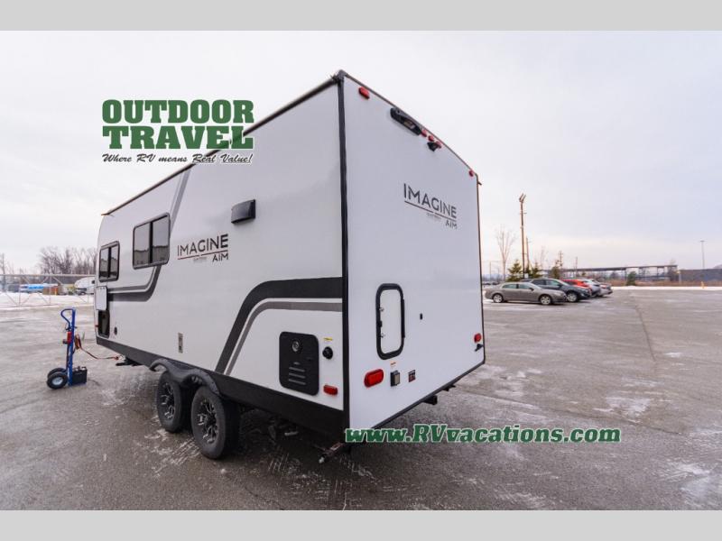 The Imagine AIM 19MLA features one slide-out, providing extra space and enhancing the living area for a more comfortable experience. Inside, you'll find a well-appointed interior that can sleep two, offering a cozy retreat after a day of adventure. The smart layout maximizes space, ensuring you have everything you need, from a fully equipped kitchen to a comfortable sleeping area. The contemporary design and high-quality finishes make this travel trailer not just a vehicle, but a home.