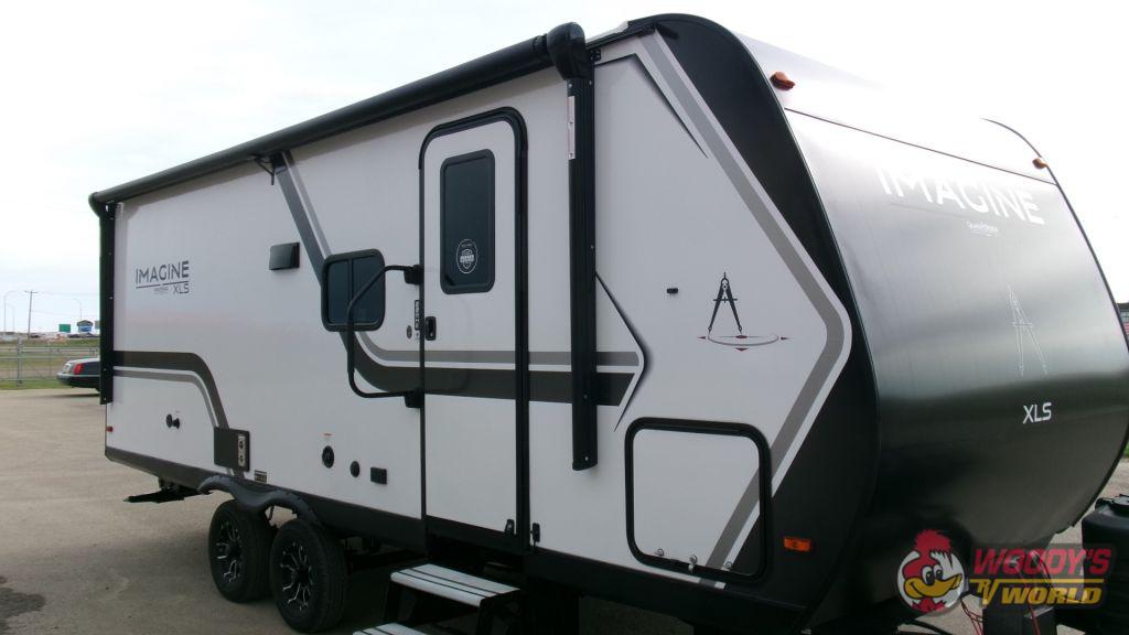 Step inside to discover a thoughtfully designed interior that maximizes both functionality and luxury. The Imagine XLS 22BHE features a spacious living area, complete with a convertible dinette and plush seating, perfect for family gatherings or quiet evenings. The kitchen is equipped with state-of-the-art appliances, including a refrigerator, microwave, and a three-burner stove, all seamlessly integrated into the design. The sleeping quarters boast a queen-sized bed and double bunk beds, comfortably accommodating up to six occupants, making it ideal for families or groups of friends.
