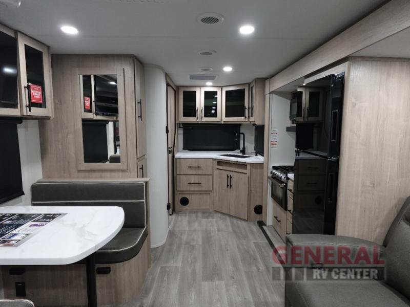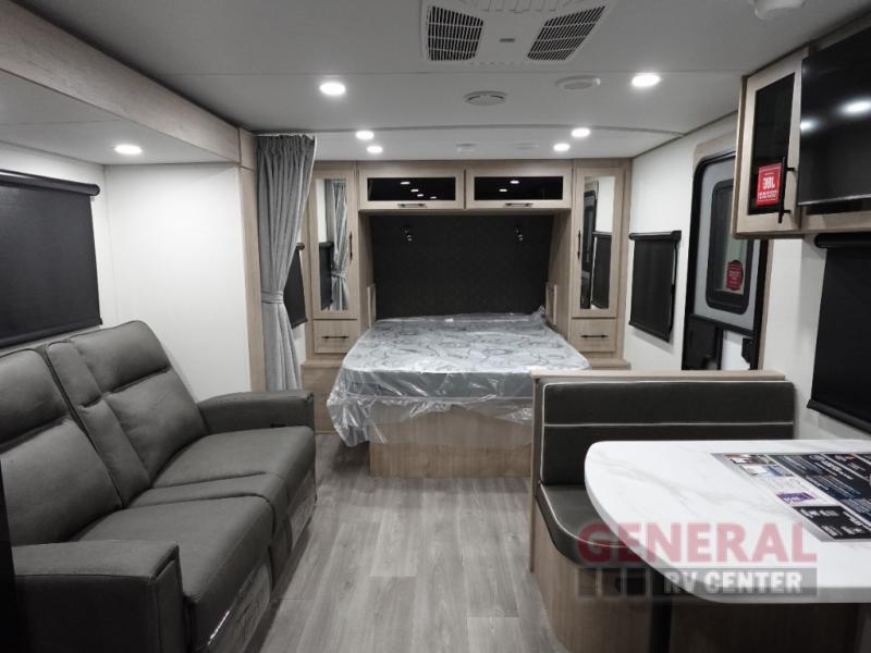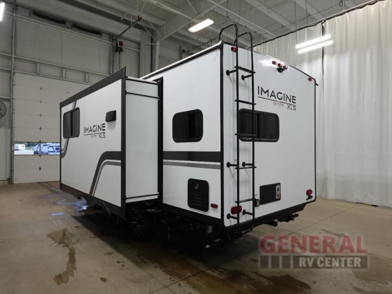 The Imagine XLS 22MLE features a single slide-out, which significantly enhances the interior space, allowing for a comfortable living area that can accommodate up to three people. The intelligently designed floor plan includes a cozy sleeping area, a fully equipped kitchen, and a well-appointed bathroom, ensuring that all your needs are met while on the road. The interior is crafted with high-quality materials and finishes, providing a luxurious feel that is both inviting and practical.