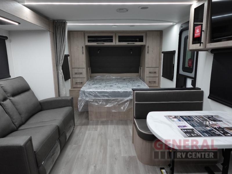 The Imagine XLS 22MLE features one slide-out, which significantly enhances the living space, creating an open and inviting atmosphere. Inside, you will find accommodations for up to three people, making it ideal for couples or small families seeking adventure without compromising on comfort. The interior is thoughtfully designed with high-quality materials and finishes, ensuring a cozy and stylish environment. The kitchen is equipped with modern appliances, ample storage, and a functional layout, allowing you to prepare meals with ease.