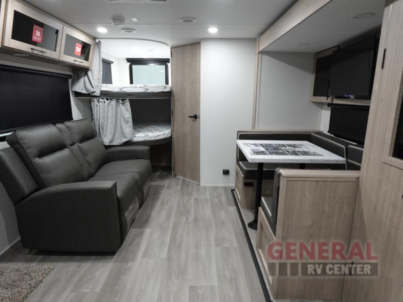 Measuring 24 feet in length, the Imagine XLS 25DBE is compact enough for easy towing yet spacious enough to accommodate up to eight sleepers comfortably. The clever layout includes a single slide-out, which expands your living space, providing ample room for relaxation and entertainment. Whether you're enjoying a cozy family movie night or hosting friends for a weekend getaway, this travel trailer ensures everyone has their own space to unwind.