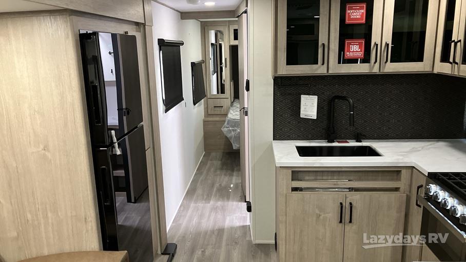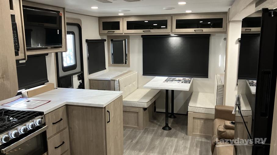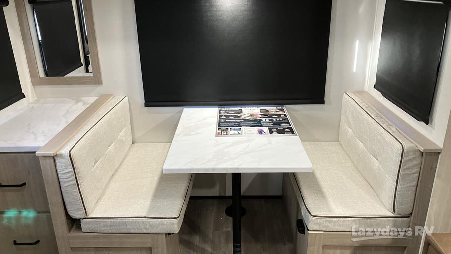 Step inside, and you'll immediately notice the clever use of space, thanks to its single slide-out that expands your living area. The interior is thoughtfully designed to maximize comfort and functionality. You'll find a cozy seating area perfect for relaxing after a day of exploring, and a fully equipped kitchen that makes meal prep a breeze. The modern amenities and stylish finishes make it feel like a home away from home. Plus, with plenty of storage options, you can bring along all your essentials without feeling cramped.