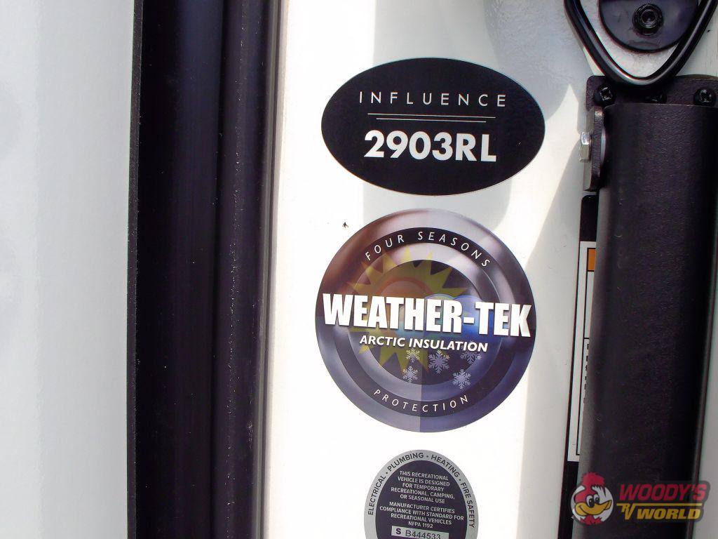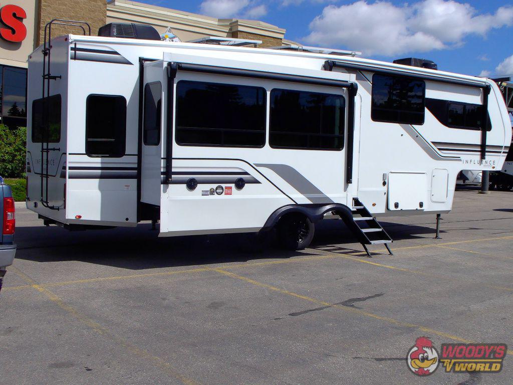 The master bedroom offers a tranquil retreat with a comfortable queen-sized bed and ample storage space, while the well-appointed bathroom features a roomy shower and premium fixtures. Built with Grand Design's renowned quality and attention to detail, this fifth wheel is designed to withstand the rigors of the road while providing a luxurious living experience. Don't miss your chance to own the 2026 Grand Design Influence 2903RL Fifth Wheel and embark on unforgettable journeys with unparalleled comfort and style. Act now and make your travel dreams a reality!