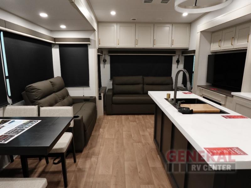 Step inside and be greeted by a meticulously crafted interior that combines elegance with functionality. The open floor plan is designed to maximize space and comfort, featuring a fully equipped kitchen with top-of-the-line appliances, a cozy living area with plush seating, and a state-of-the-art entertainment system. The bedroom offers a serene retreat with ample storage, ensuring you have everything you need for extended journeys. Every detail in the Grand Design Influence 3003RL is thoughtfully curated to enhance your travel experience.