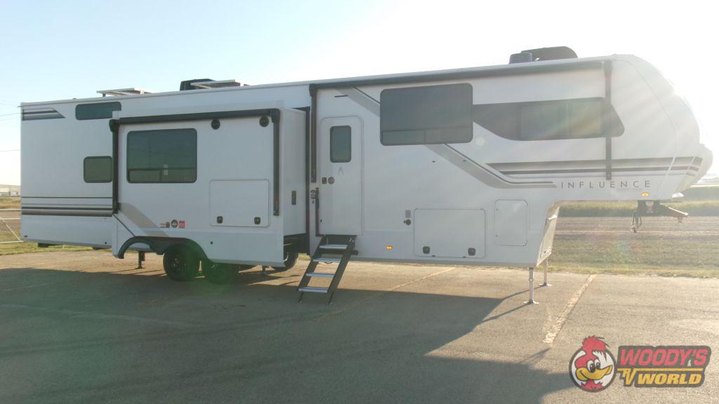 Discover the ultimate in luxury and adventure with the 2026 Grand Design Influence 3804DS Fifth Wheel! This stunning RV is your ticket to exploring the great outdoors without sacrificing the comforts of home. Measuring an impressive 42 feet in length, this spacious fifth wheel is designed to accommodate your entire family and friends with ease. With its sleek, modern design and high-quality finishes, you'll be the envy of every campground.