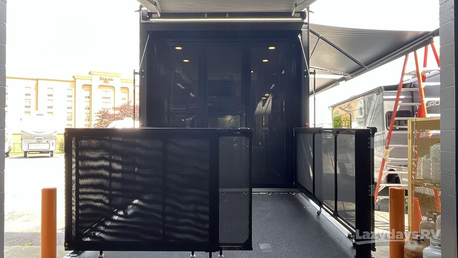 This fifth wheel boasts two strategically designed slide-outs, expanding the living space to provide an unparalleled level of comfort. Inside, you will find a meticulously crafted interior that combines modern aesthetics with practical functionality. The living area is equipped with plush seating and state-of-the-art entertainment options, ensuring relaxation and enjoyment during your travels. The kitchen is a culinary enthusiast's dream, featuring high-end appliances and ample counter space, allowing you to prepare meals with ease.