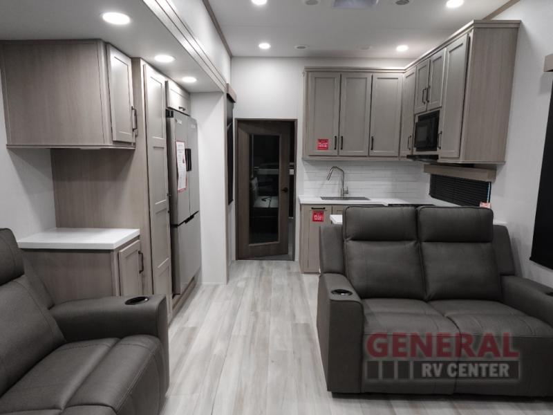 Measuring an impressive 37 feet in length, the Momentum G-Class 415G offers a generous layout that ensures everyone has room to relax and enjoy. The RV's robust construction is evident in its weight of 7,328 kilograms, providing a stable and secure ride. The thoughtfully designed interior includes a fully equipped kitchen, a cozy living area, and ample storage, ensuring you have everything you need for extended trips. The high-quality finishes and modern amenities make this RV a true standout in its class.