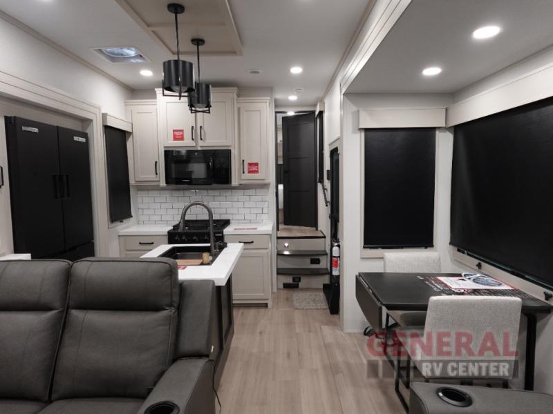 Measuring an impressive 37 feet in length, this RV provides a generous layout that includes a master suite, a cozy loft, and a versatile living area. The interior is thoughtfully designed with high-end finishes and modern amenities, ensuring that every journey is as comfortable as it is memorable. The kitchen is equipped with top-of-the-line appliances, making meal preparation a breeze, while the entertainment system ensures that relaxation is always at your fingertips. The RV's robust construction and sleek design make it a standout on the road, turning heads wherever you go.