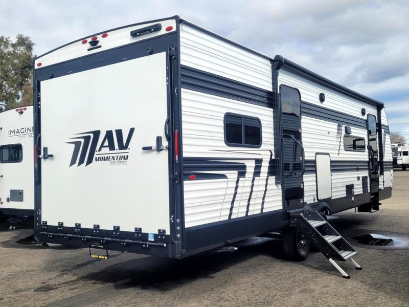 The Momentum MAV 28MAV features a single slide-out, ingeniously expanding the living space to create a more open and inviting atmosphere. This RV is designed to sleep up to eight individuals comfortably, making it an ideal choice for families or groups of friends. The interior is thoughtfully designed with high-quality materials and finishes, ensuring a luxurious and relaxing environment. The kitchen is equipped with modern appliances, allowing you to prepare meals with ease, while the living area provides ample seating for socializing or unwinding after a day of adventure.