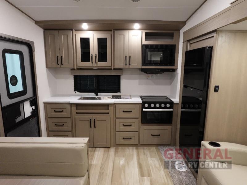 The Reflection 22RK features a single slide-out, ingeniously expanding the living space to create a welcoming environment for relaxation and entertainment. Inside, the RV comfortably accommodates up to four people, making it perfect for family adventures or intimate getaways. The interior is thoughtfully designed with high-quality materials and finishes, ensuring a luxurious experience on the road. The well-appointed kitchen, complete with modern appliances, allows for effortless meal preparation, while the cozy sleeping quarters promise restful nights under the stars.
