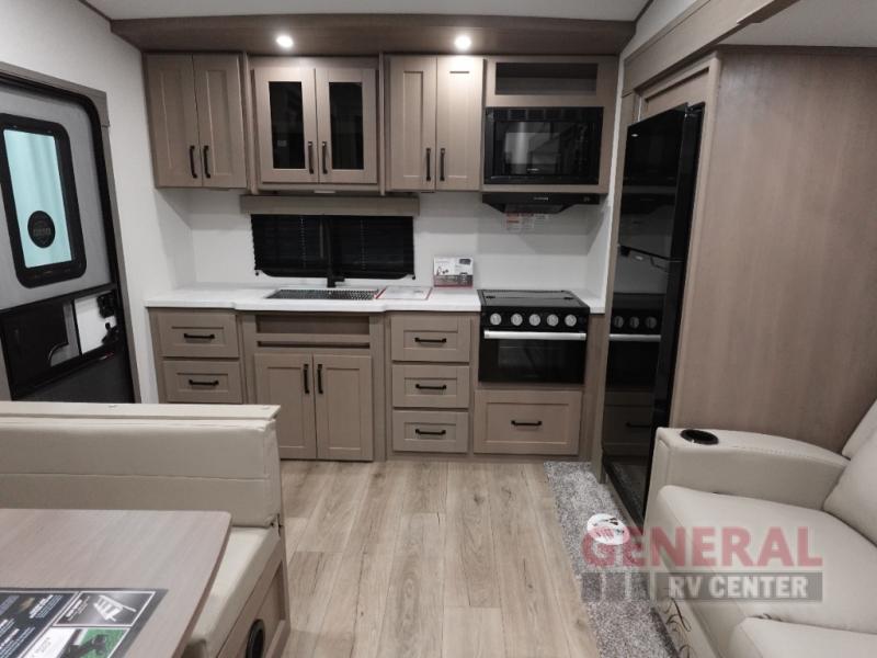 Inside, you'll find a smart layout that maximizes comfort and functionality. The single slide-out expands your living space, providing ample room to relax and unwind. The 22RK comfortably sleeps up to four people, thanks to its well-designed sleeping arrangements. Whether you're planning a weekend getaway or an extended road trip, this RV has you covered. Plus, with a weight of just 3,253 kilograms, it's lightweight enough to be towed by a variety of vehicles, giving you more flexibility in your travel plans.