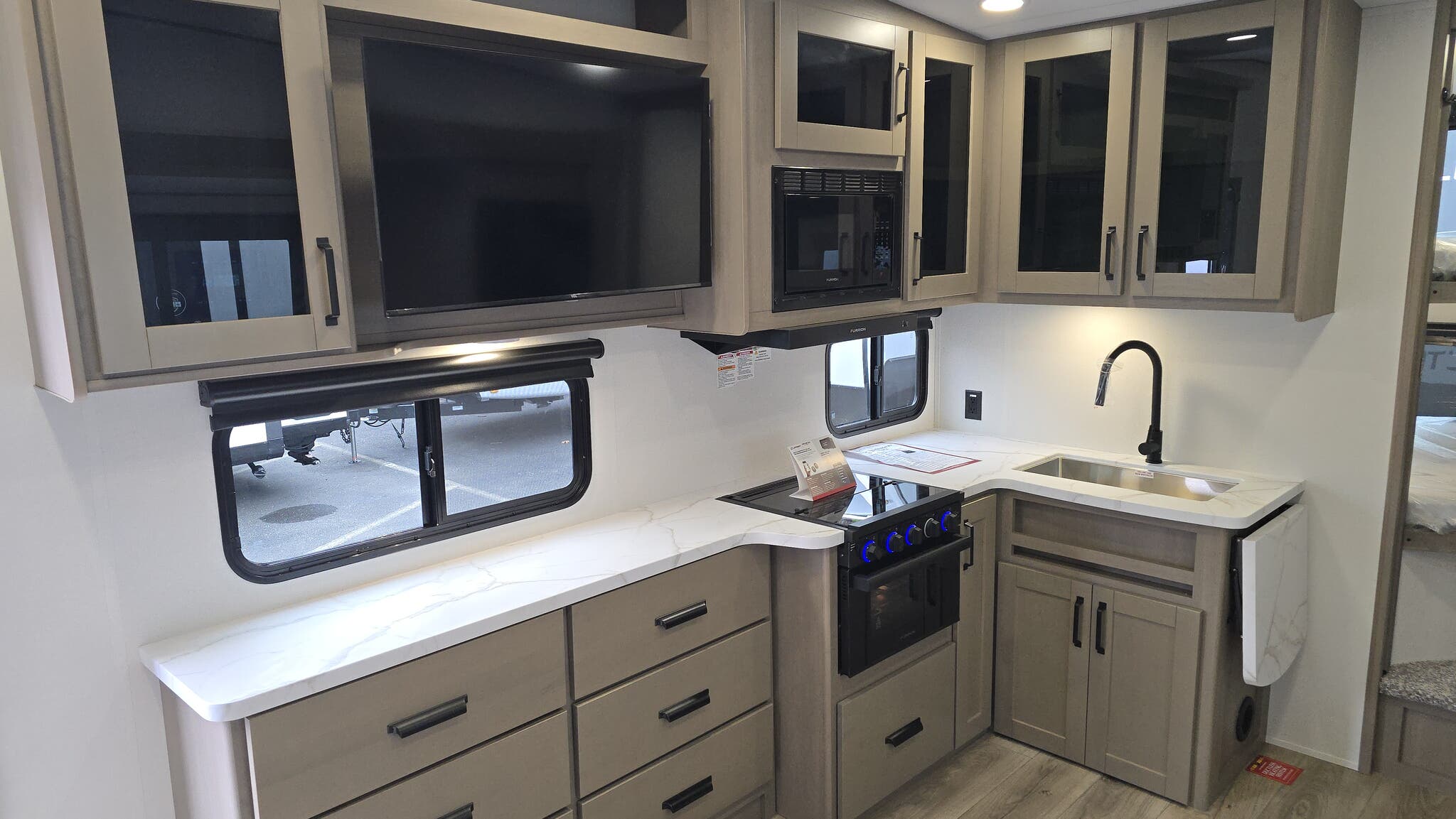 Step inside and be amazed by the thoughtfully designed living space that can comfortably sleep up to 10 people. Whether you're planning a weekend getaway or an extended road trip, the 27BH ensures everyone has a cozy place to rest. The intelligent layout includes a master bedroom, bunk beds, and convertible seating areas, making it ideal for families or groups of friends. The modern kitchen is equipped with all the essentials, allowing you to prepare delicious meals on the go, while the inviting living area is perfect for unwinding after a day of adventure.