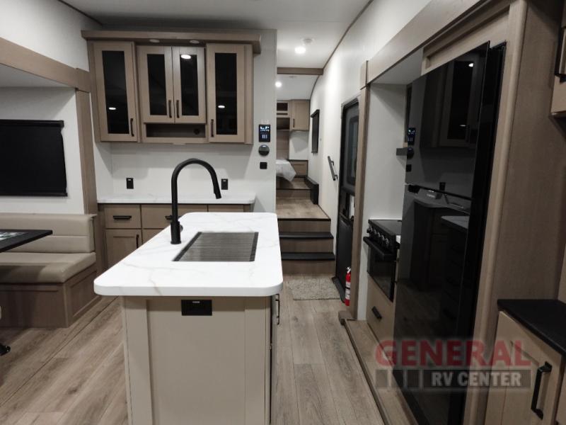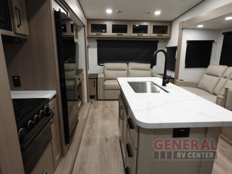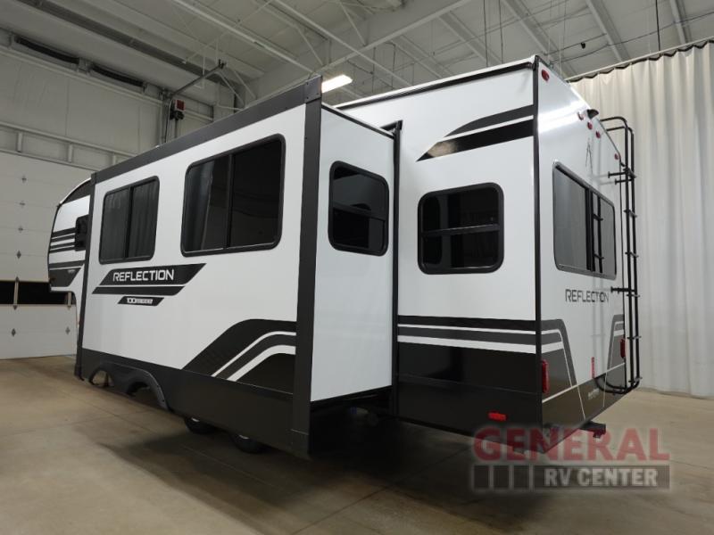 The Reflection 28RL features two expertly designed slide-outs, significantly expanding the interior space to provide a comfortable and inviting atmosphere. This model is thoughtfully designed to accommodate up to five sleepers, making it ideal for families or small groups seeking adventure without compromising on comfort. The interior layout is both intuitive and elegant, featuring high-quality finishes and modern amenities that ensure a home-like experience on the road.