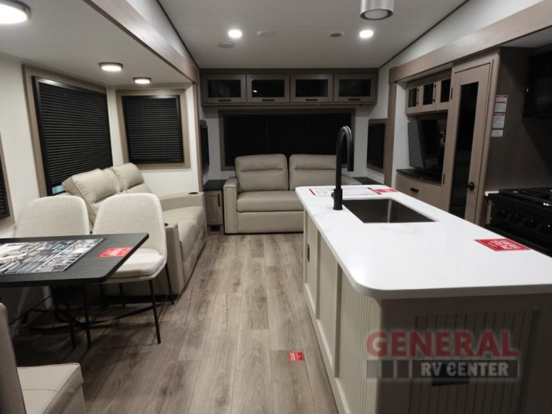 Measuring approximately 29 feet in length, the Reflection 337RLS is perfect for those who crave both mobility and space. It comfortably sleeps four, making it ideal for small families or couples seeking a luxurious getaway. The interior is thoughtfully designed with high-quality finishes and modern amenities, ensuring a home-like feel wherever you roam. The kitchen is equipped with top-of-the-line appliances, ample counter space, and storage, making meal preparation a breeze.