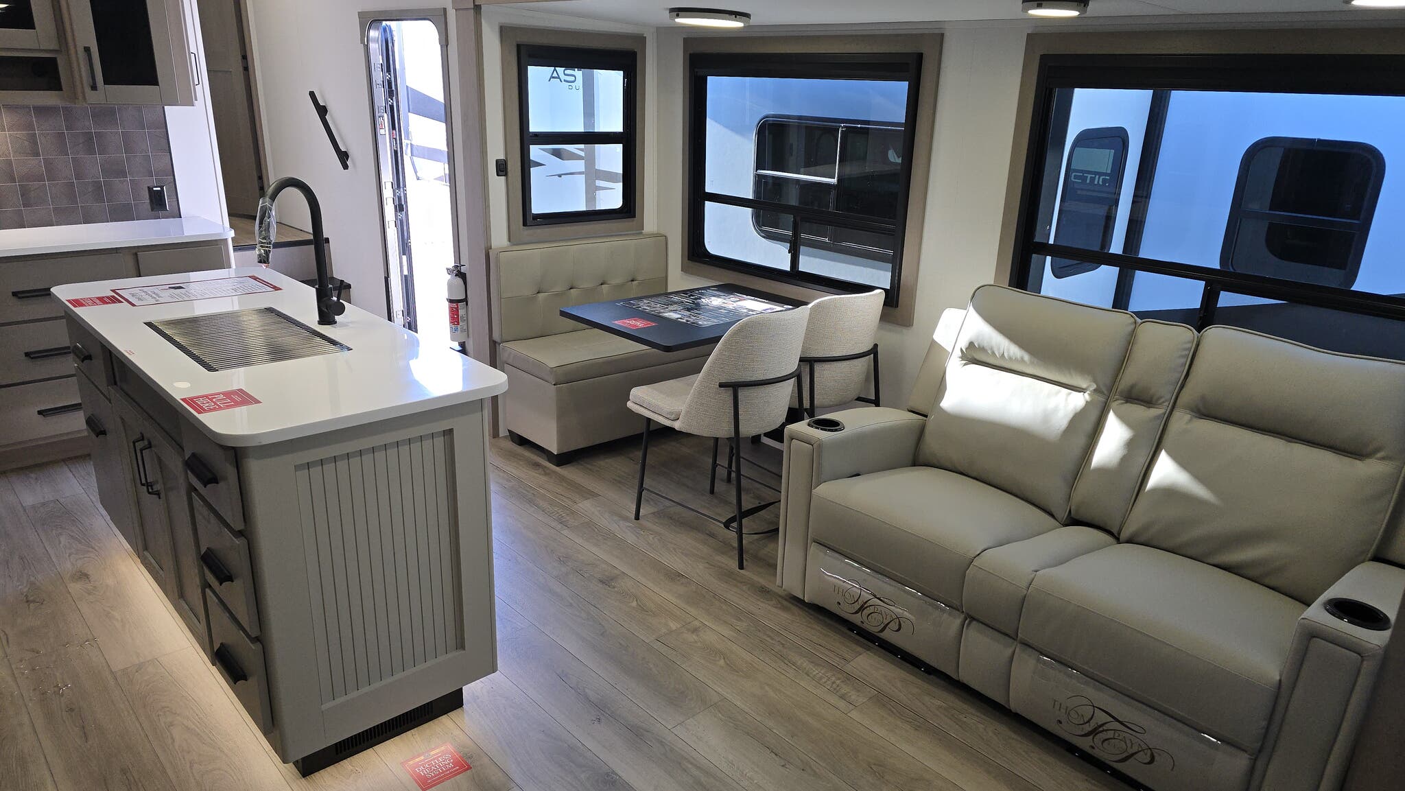 Step inside to find a meticulously crafted interior that sleeps up to three people, making it ideal for couples or small families. The open floor plan features a cozy living area with plush seating, a state-of-the-art entertainment system, and a fully-equipped kitchen with modern appliances. The elegant design and high-quality finishes throughout create an inviting atmosphere that will make every journey a memorable experience. The bedroom offers a tranquil retreat with ample storage space, ensuring you have everything you need for a comfortable stay.