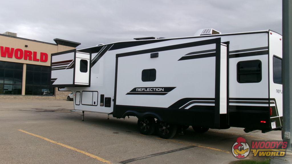 Step inside to experience a world of elegance and functionality. The Reflection 337RLS boasts a beautifully appointed interior with high-end finishes and thoughtful design. The living area features plush seating and a state-of-the-art entertainment system, perfect for relaxing after a day of exploration. The kitchen is a chef's dream, equipped with modern appliances, including a large refrigerator, oven, and microwave, all seamlessly integrated into the sleek cabinetry. With over 2 meters of counter space, meal preparation is a breeze, whether you're cooking for two or entertaining guests.