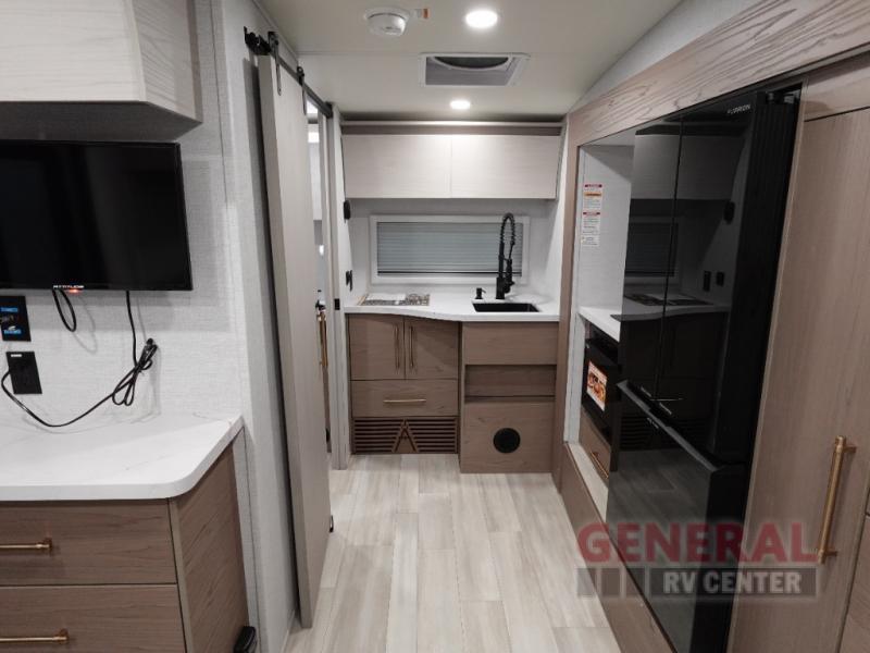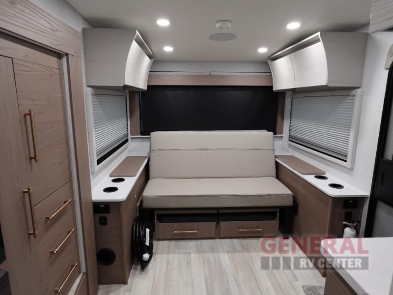 The Serenova 150HL features one expertly engineered slide-out, maximizing the interior space to create a welcoming and open living area. This travel trailer is thoughtfully designed to sleep two, providing a cozy and intimate environment for relaxation after a day of exploration. The interior is adorned with high-quality finishes and modern amenities, ensuring that every moment spent inside is as enjoyable as the destinations you visit. The efficient layout includes a well-equipped kitchen, a comfortable seating area, and ample storage solutions, making it a home away from home.