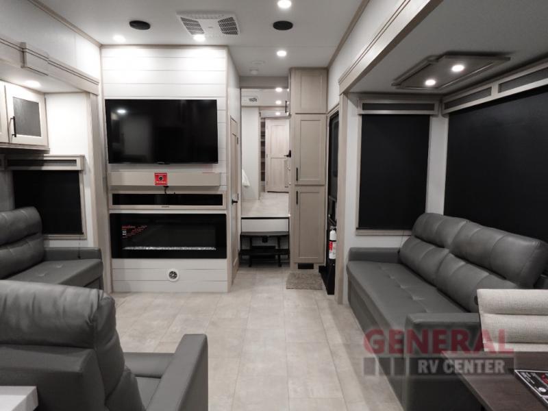 The Solitude 417KB boasts four slide-outs, creating an expansive living space that can comfortably sleep up to six people. Whether you're traveling with family or friends, everyone will have their own cozy spot to unwind. The interior is designed with modern amenities and high-quality finishes, making it feel like a true home away from home. Imagine cooking up a storm in the fully-equipped kitchen or lounging in the spacious living area after a day of exploring.