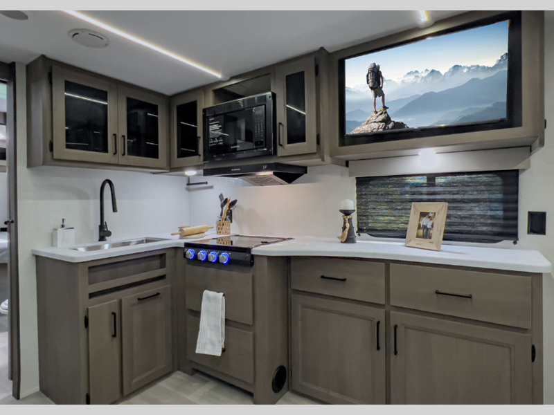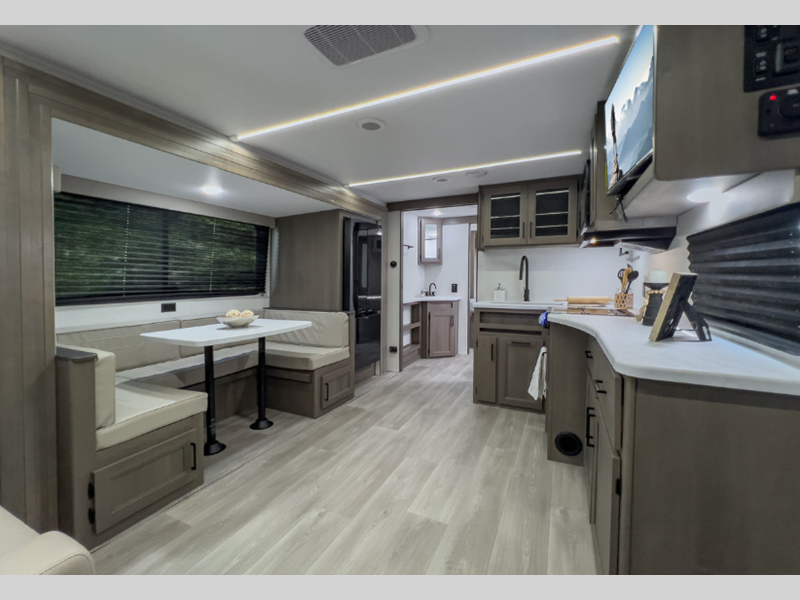 Inside, you'll find a cleverly designed layout that can comfortably sleep up to 8 people. Whether you're traveling with family or friends, everyone will have their own cozy spot to rest after a day of adventure. The single slide-out expands the living area, giving you extra room to relax and enjoy your time indoors. With a weight of just 2,872 kilograms, this travel trailer is easy to tow, making it a great option for both seasoned RVers and newcomers alike.