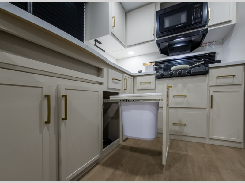 The Transcend 285RKT features one slide-out, which significantly enhances the living space, creating a roomy and inviting interior. Designed to comfortably sleep two, this travel trailer is perfect for couples seeking a cozy retreat on the road. The well-appointed kitchen, complete with modern appliances and ample counter space, allows for effortless meal preparation, while the spacious living area provides a comfortable setting for relaxation and entertainment. The thoughtfully designed layout ensures that every inch of space is utilized efficiently, offering plenty of storage options for all your travel essentials.