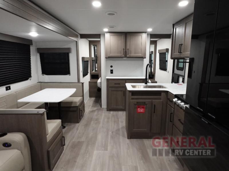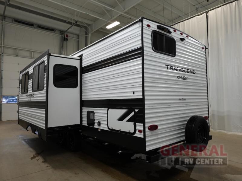 The Transcend Xplor 27DBX features a single slide-out that expands your living area, creating a welcoming environment for relaxation and entertainment. Inside, you'll find a well-appointed interior with modern amenities designed to enhance your travel experience. The layout includes a cozy sleeping area, a fully equipped kitchen, and a functional bathroom, ensuring all the comforts of home are at your fingertips. With a weight of approximately 3,190 kilograms, this travel trailer is built for durability and ease of use, making it an ideal choice for both seasoned travelers and those new to RV life.