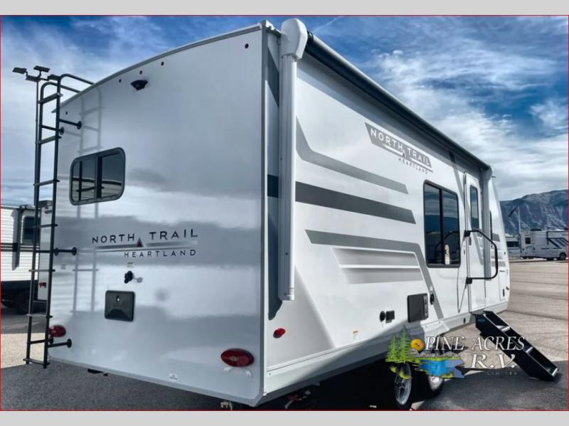 Discover the ultimate in travel comfort and convenience with the 2026 Heartland North Trail 210MB Travel Trailer. This state-of-the-art RV is designed for adventurers who crave the freedom of the open road without sacrificing the comforts of home. Measuring an impressive 22 feet in length, this travel trailer is compact enough for easy towing yet spacious enough to accommodate your every need. With a sleek, aerodynamic design, the North Trail 210MB ensures a smooth, fuel-efficient journey, allowing you to explore further and experience more.