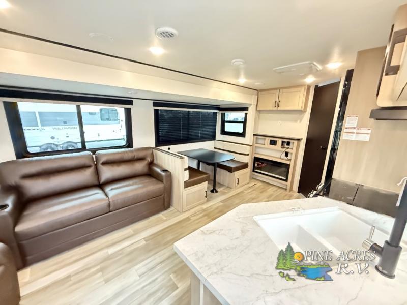 Measuring approximately 26 feet in length, the Prowler 2601RLS is expertly crafted to provide ample space for relaxation and entertainment. The single slide-out expands your living area, creating a welcoming environment for family and friends. Inside, you'll find plush seating and a well-appointed kitchen, complete with modern appliances, ensuring you have everything you need to prepare delicious meals on the go. The trailer comfortably sleeps four, making it perfect for couples or small families seeking adventure.