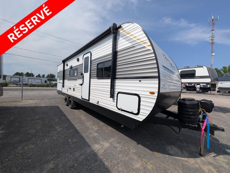 Inside, the Open Range 26BHS offers a spacious and thoughtfully designed interior, featuring a well-appointed living area, a fully equipped kitchen, and a cozy sleeping arrangement. The kitchen boasts a refrigerator, stove, and microwave, all designed to make meal preparation a breeze. The living area is designed for relaxation, with ample seating and a dining space that comfortably accommodates your family. The sleeping quarters include a master bedroom with a queen-sized bed and a bunkhouse, providing ample space for up to eight people.