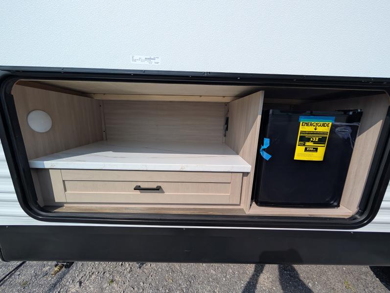 Step inside to discover a thoughtfully designed interior that maximizes space and functionality. The Open Range 26DBS features a spacious living area, complete with plush seating and a state-of-the-art entertainment system, ensuring relaxation and enjoyment on the road. The well-appointed kitchen is equipped with high-quality appliances, including a refrigerator, microwave, and stove, all designed to make meal preparation a breeze. The trailer boasts a comfortable sleeping arrangement, with a master bedroom and additional bunk beds, accommodating up to eight people with ease. The bathroom is elegantly designed, featuring modern fixtures and ample storage, providing all the comforts of home.