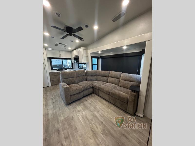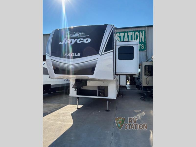 Introducing the 2026 Jayco Eagle 365UKTS Fifth Wheel, a pinnacle of luxury and comfort for the discerning traveler. This meticulously crafted RV, measuring an impressive 40 feet in length, is designed to elevate your camping experience with its spacious and thoughtfully designed interior. With three slide-outs, this model offers an expansive living area that ensures you and your companions can relax in style and comfort.
