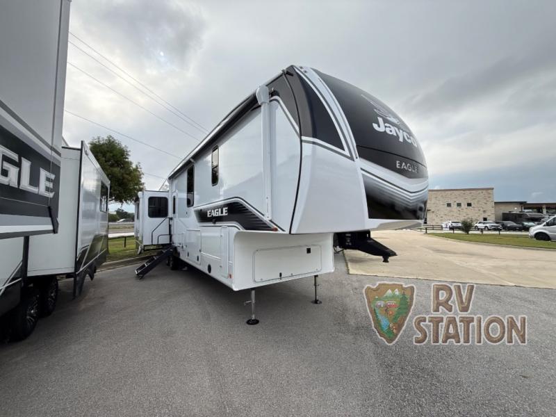 Discover the ultimate in luxury and comfort with the 2026 Jayco Eagle 370FBTS Fifth Wheel, a masterpiece of modern RV design. This stunning vehicle, measuring an impressive 33 feet in length, is perfect for those who crave adventure without sacrificing the comforts of home. With three spacious slide-outs, this RV offers an expansive living area that effortlessly accommodates up to four people, making it ideal for family getaways or a cozy retreat for couples.