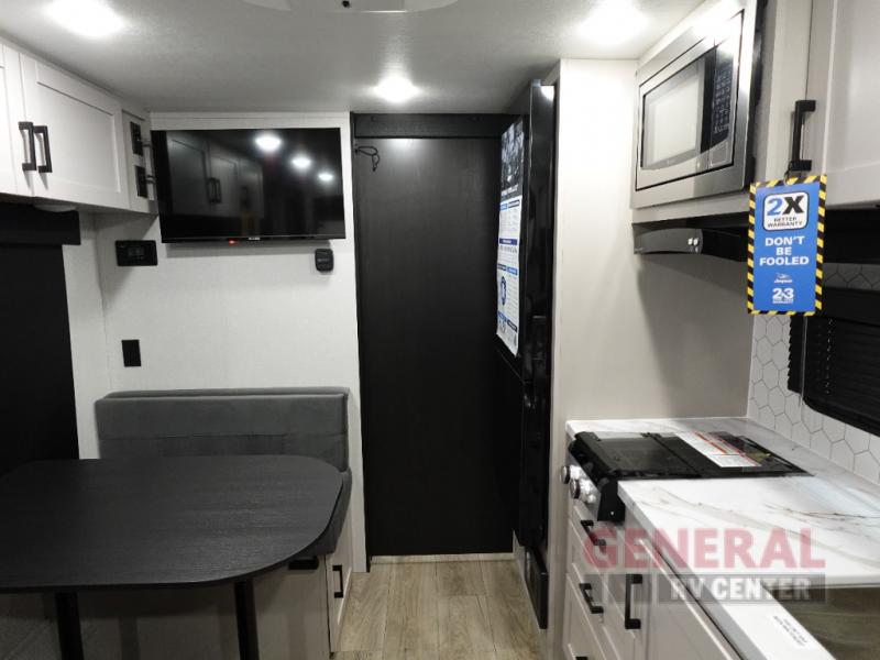 This travel trailer comfortably sleeps up to three people, offering a cozy retreat after a day of exploration. The interior is thoughtfully designed to maximize space and functionality, featuring a well-equipped kitchenette, a comfortable sleeping area, and a compact yet efficient bathroom. Every detail has been considered to ensure your journey is as comfortable as possible, from the high-quality finishes to the smart storage solutions that make the most of every inch of space.