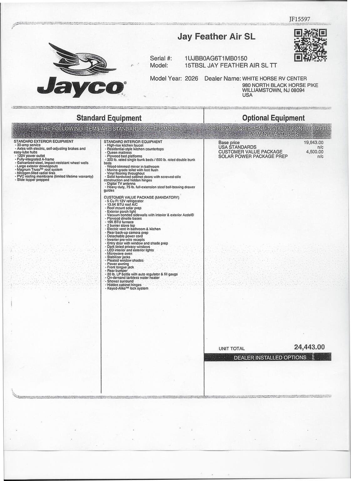 Weighing in at approximately 2,268 kilograms, the Jay Feather Air SL 15TBSL is lightweight yet robust, allowing for efficient towing without compromising on durability. Whether you're planning a weekend escape or an extended road trip, this travel trailer offers the perfect balance of size, comfort, and practicality. Experience the freedom of the open road with the 2026 Jayco Jay Feather Air SL 15TBSL, your ideal companion for unforgettable adventures.