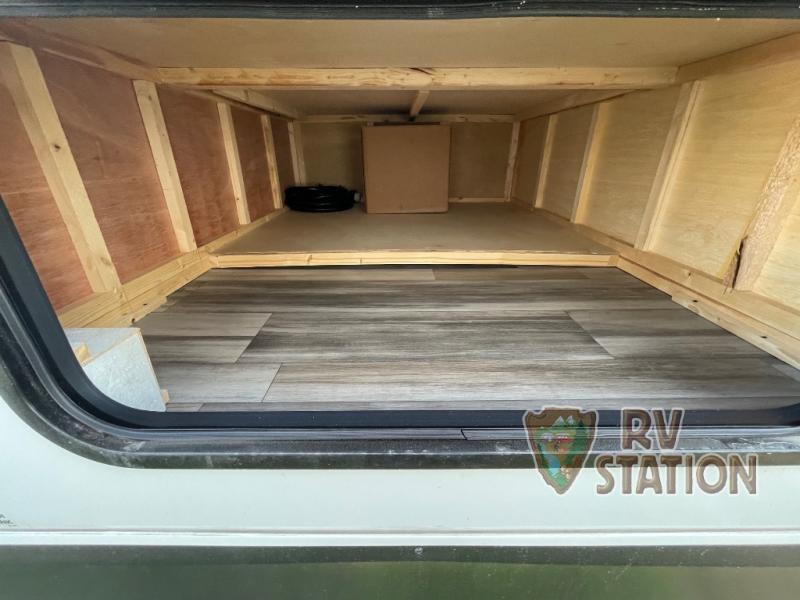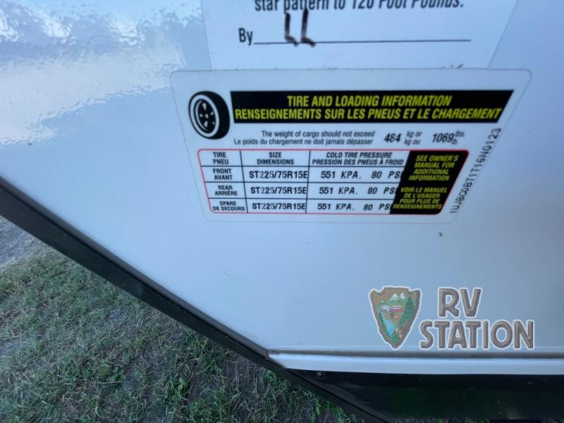 Step inside to discover a thoughtfully crafted interior that boasts a spacious rear kitchen layout. The kitchen is equipped with modern appliances, including a refrigerator, microwave, and oven, ensuring you have everything you need to prepare delicious meals on the road. The living area features a cozy seating arrangement, perfect for unwinding after a day of exploration. The trailer also includes a well-appointed bathroom with a shower, providing all the conveniences of home. With a sleeping capacity for up to six people, this RV ensures everyone enjoys a restful night's sleep.