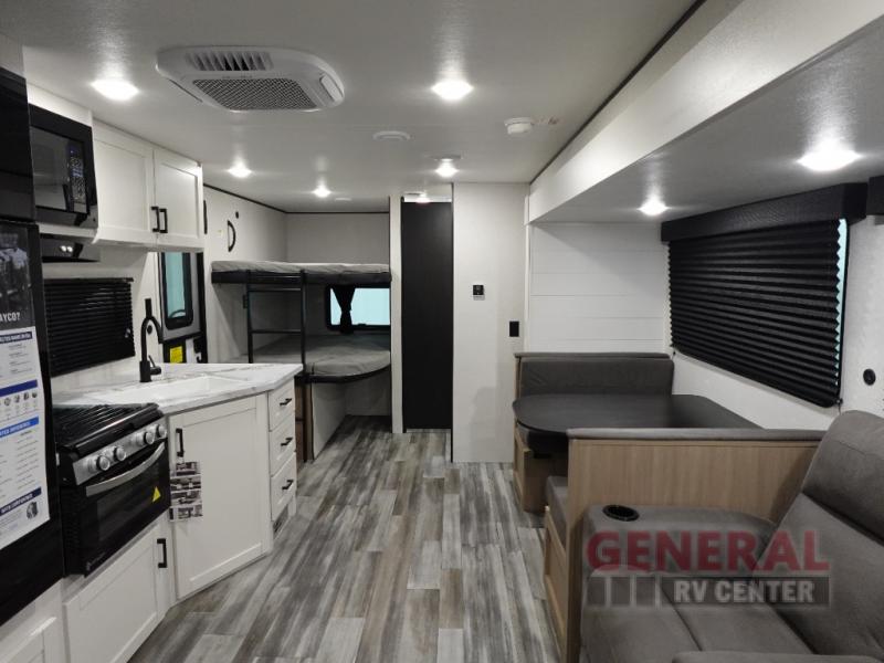 The Jay Flight SLX 263BHS is engineered to accommodate up to eight sleepers comfortably, making it perfect for family getaways or trips with friends. The intelligently designed floor plan includes a cozy queen bed, double bunk beds, and a convertible dinette and sofa, ensuring everyone has a restful night's sleep. The well-appointed kitchen is equipped with modern appliances, allowing you to prepare delicious meals on the go, while the spacious bathroom offers all the comforts of home.