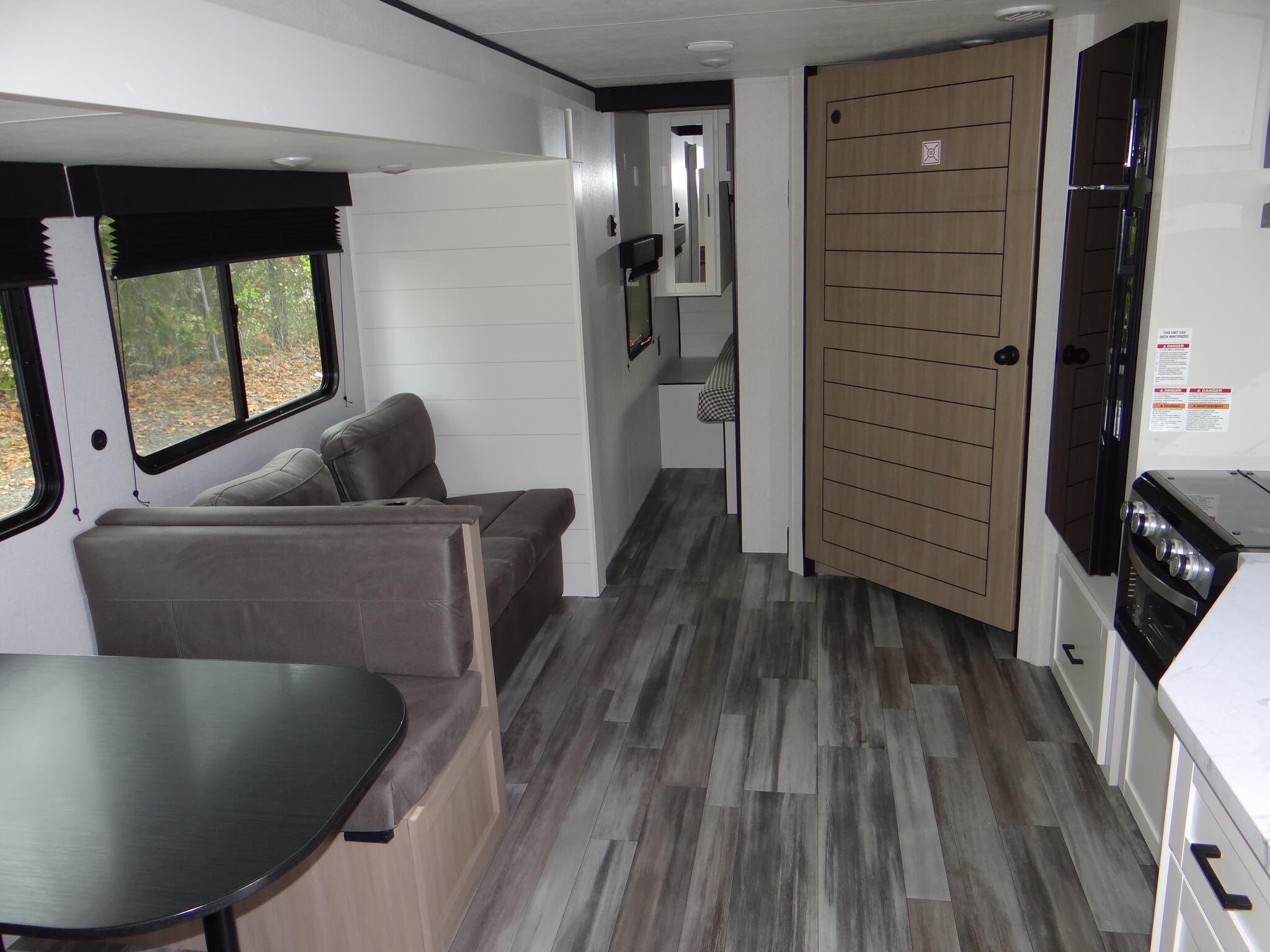 The Jay Flight SLX 263BHSW is designed to accommodate up to eight people, making it an ideal choice for family vacations or group getaways. The intelligently designed floor plan includes a master bedroom, double bunk beds, and convertible sleeping areas, ensuring everyone has a cozy place to rest. The interior is thoughtfully appointed with modern amenities, including a fully equipped kitchen, a spacious dinette, and a well-appointed bathroom, providing all the comforts of home while you explore the great outdoors.